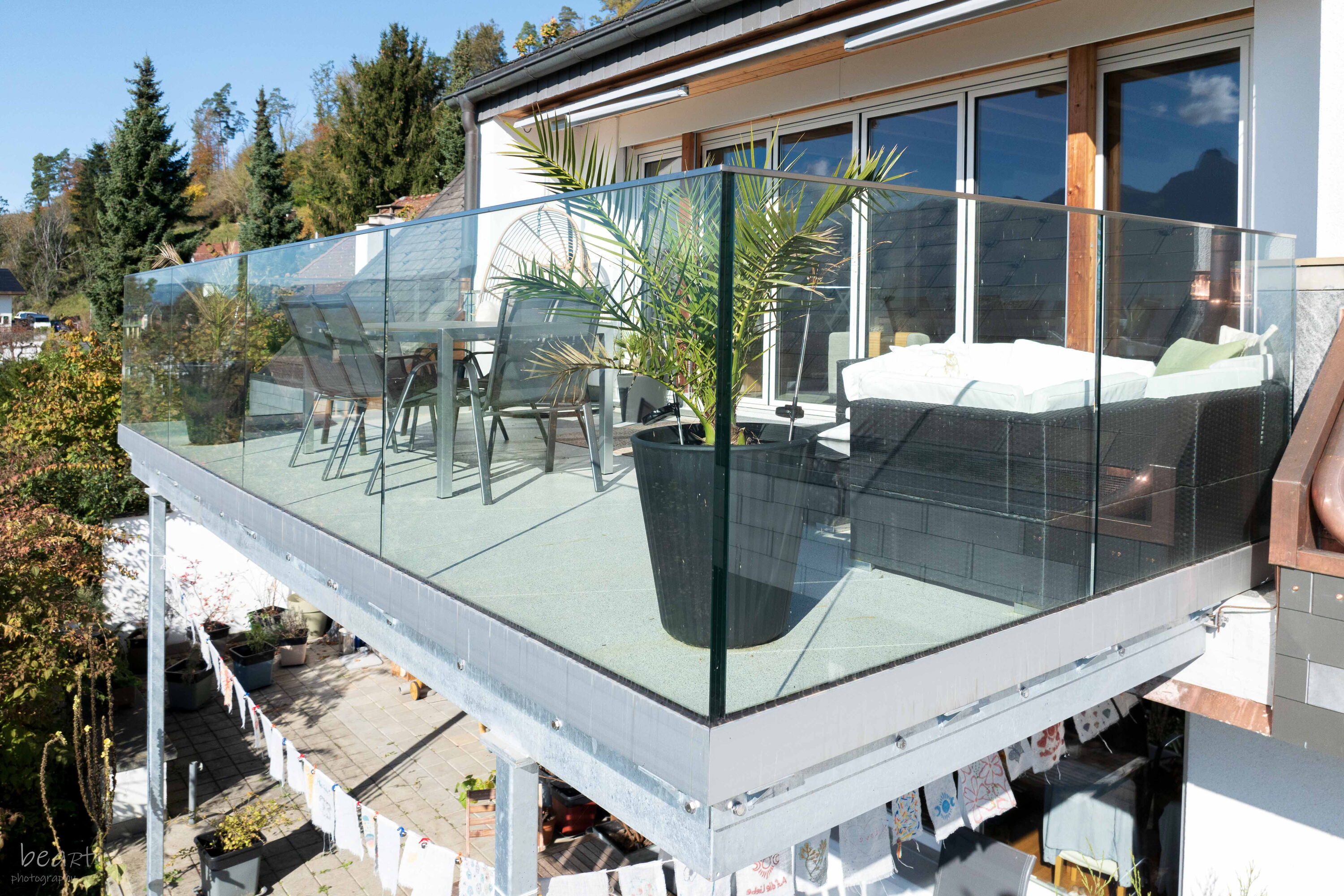 Balkonkonstruktionen mit Ganzglasgeländer