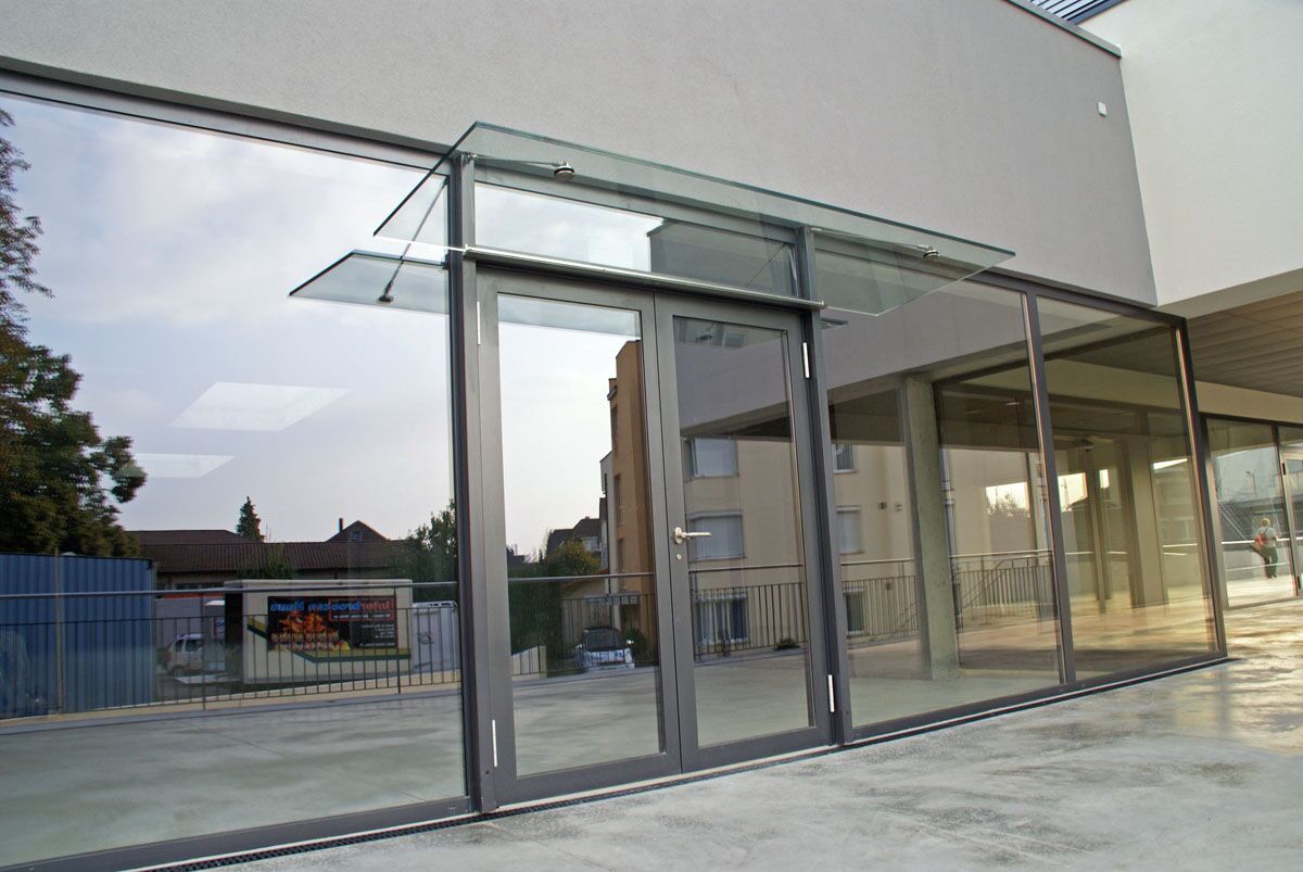 Ganzglasoptik, mit Vordach
