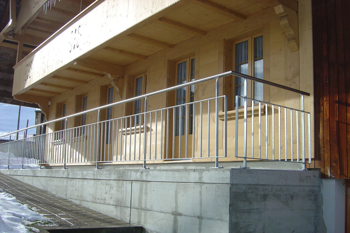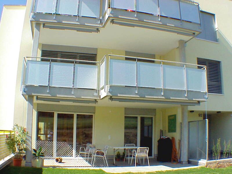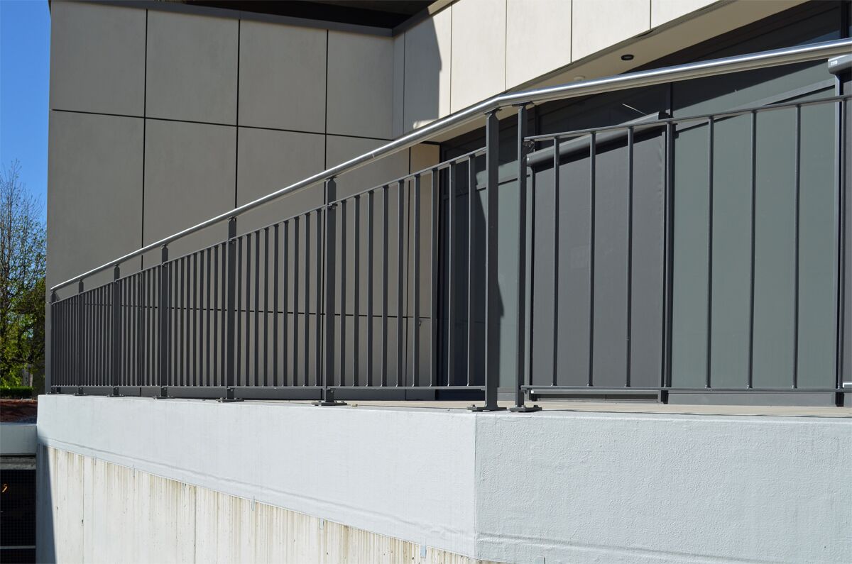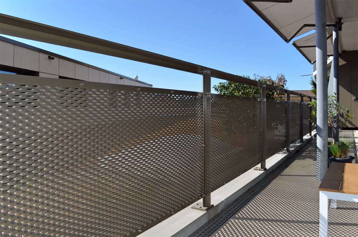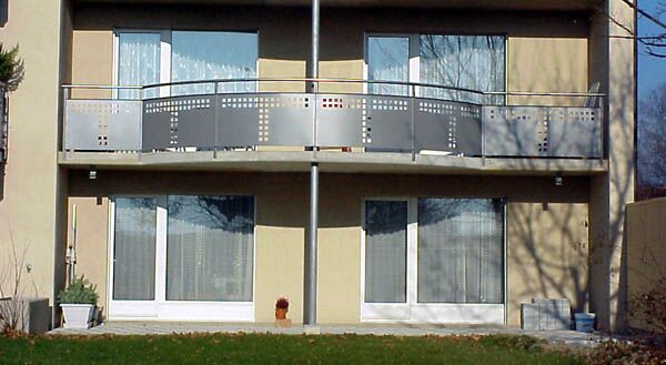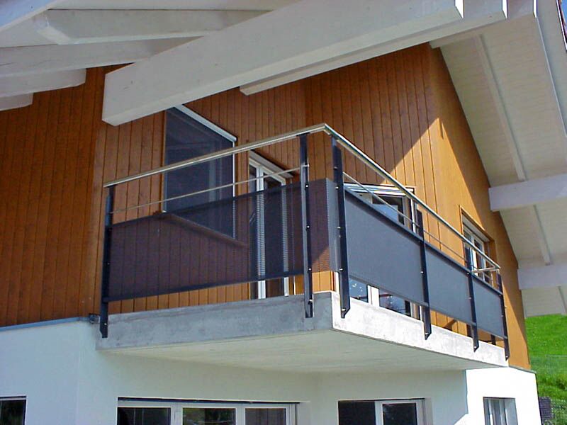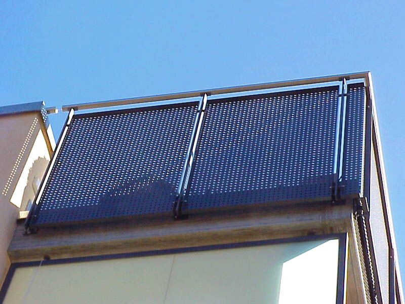 Geschlossene Geländer: Geschlossene oder halbtransparente Geländer bieten zusätzlich Diskretion und Sichtschutz. Dank unseren Möglichkeiten in der Blechverarbeitung stehen Ihnen viele Gestaltungsmöglichen offen.