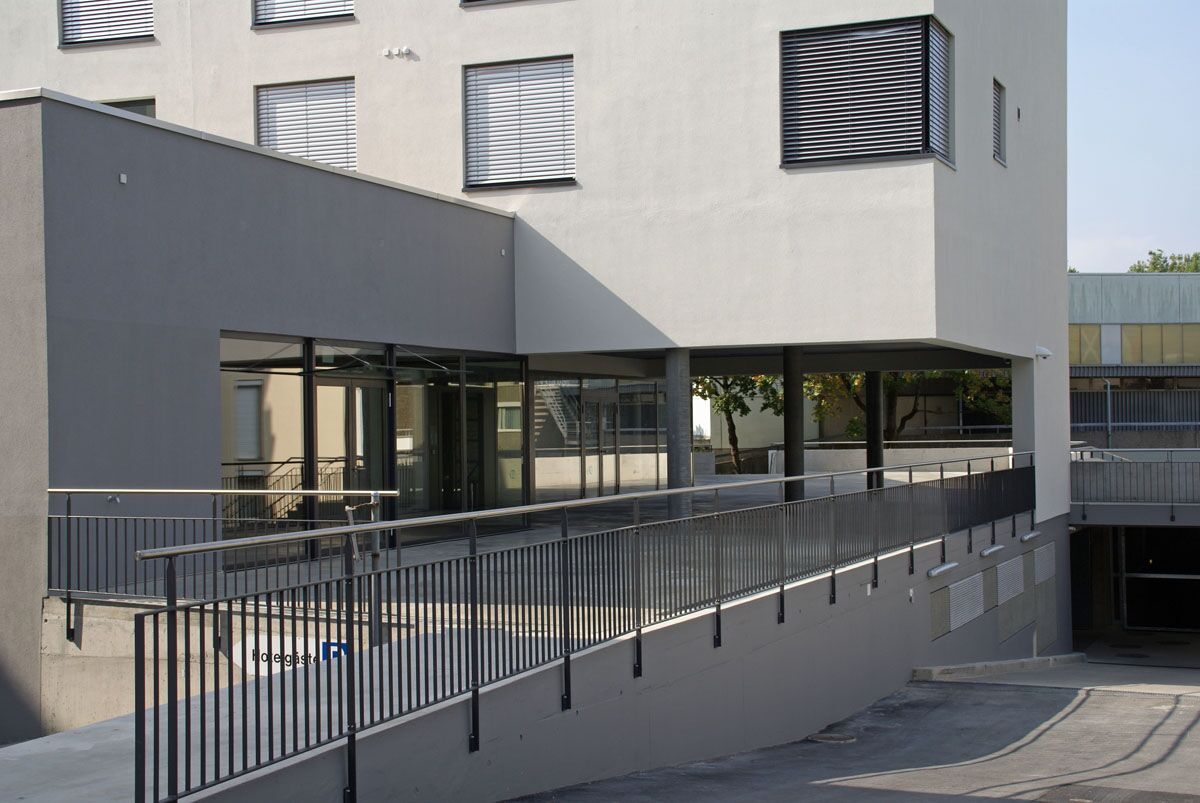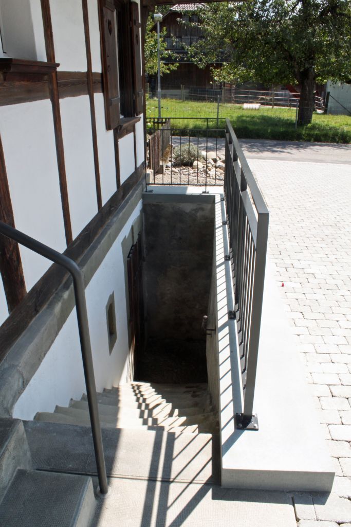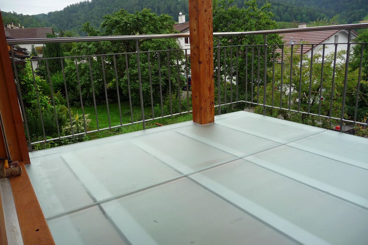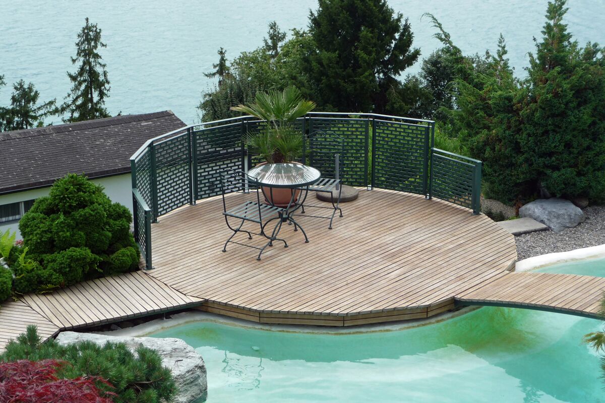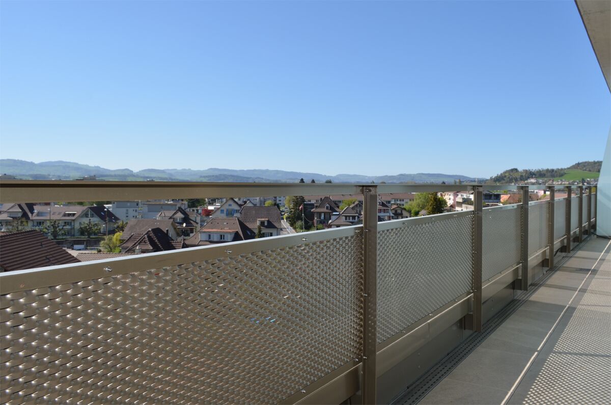 Geschlossene Geländer: Geschlossene oder halbtransparente Geländer bieten zusätzlich Diskretion und Sichtschutz. Dank unseren Möglichkeiten in der Blechverarbeitung stehen Ihnen viele Gestaltungsmöglichen offen.