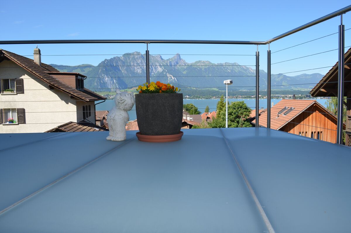 Balkonkonstruktionen in Stahl/ Beton: Die modulare, mittelschwere Bauweise dieser Balkonkonstruktion ist ideal, wenn massive und geschlossene Bodenplatten gewünscht sind. Sämtliche Ausbaumöglichkeiten, mit Windschutz- und Sichtschutzelementen, teil- oder vollverglast stehen zur Auswahl. Ein besonderer Vorteil der Betonbodenplatte ist der Wärmespeicher im Sommer. Noch am späten Abend gibt diese die Wärmestrahlung wieder zurück.