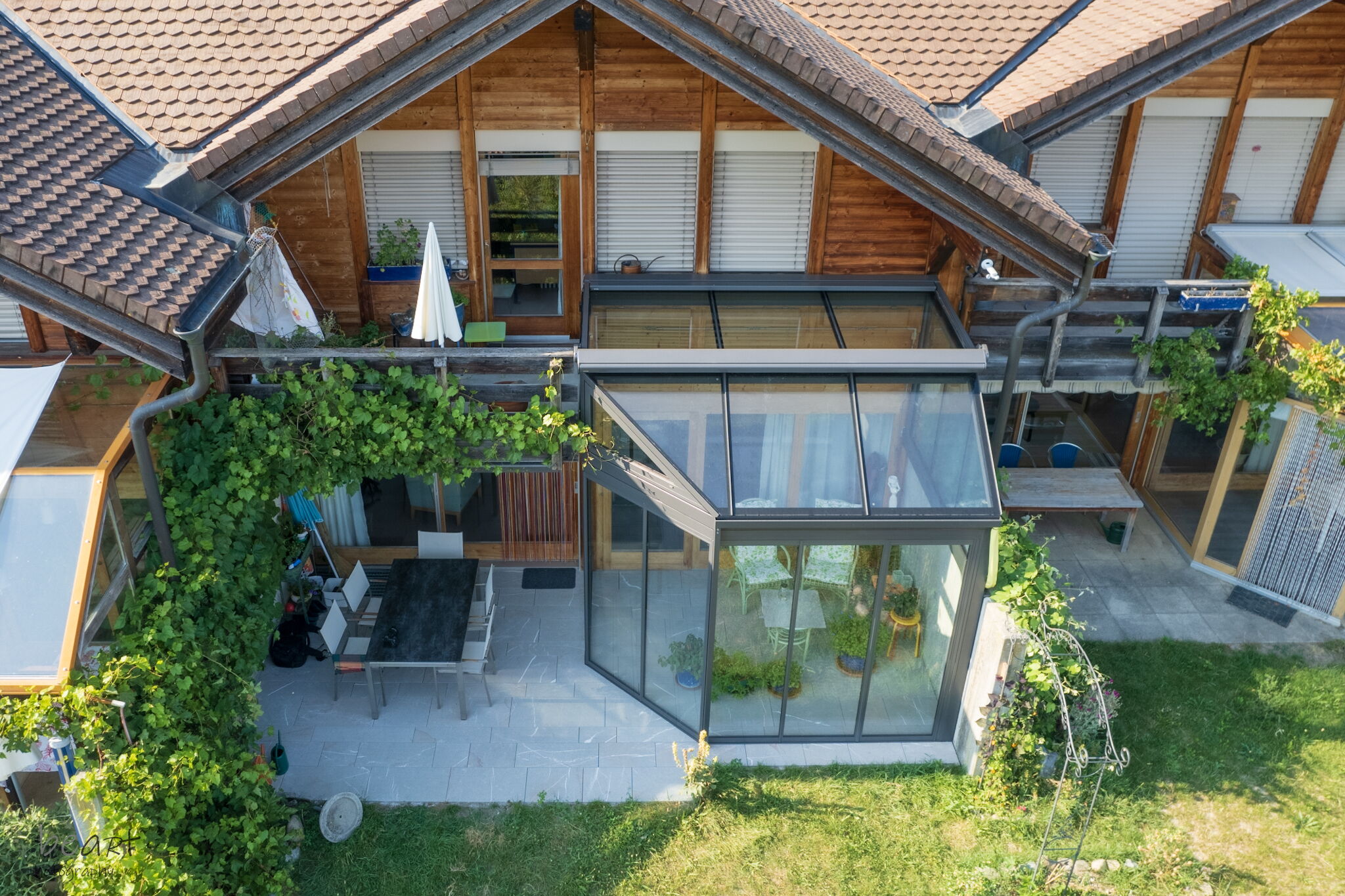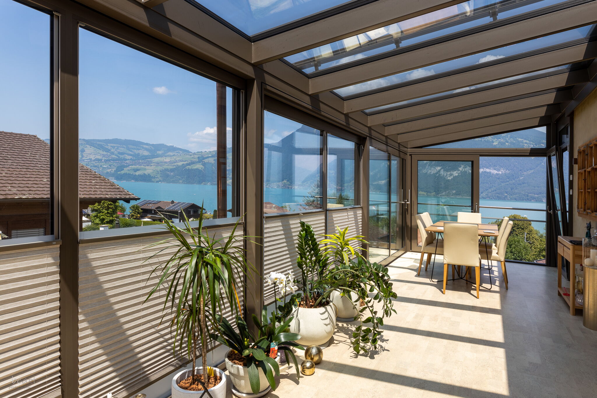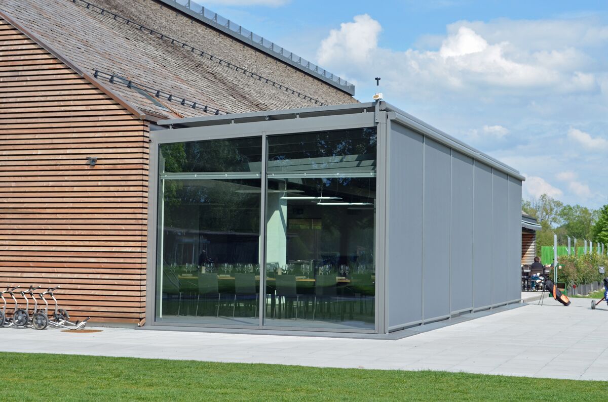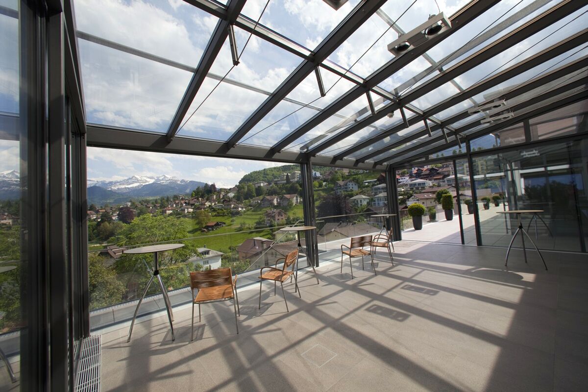 • Eingesetzt werden Dachbeschattungen und Vertikalbeschattungen der Schweizer Marke Stobag